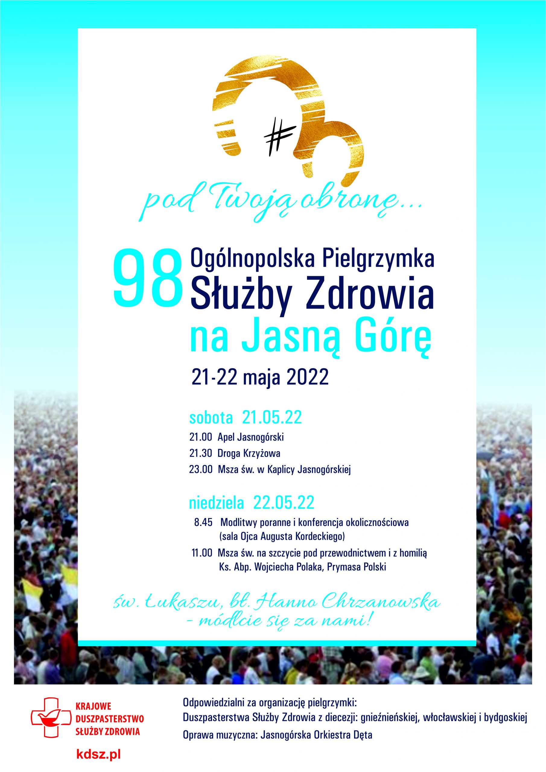 Krajowe Duszpasterstwo Służby Zdrowia zaprasza do udziału w 98. Ogólnopolskiej Pielgrzymce Służby Zdrowia na Jasną Górę, która odbędzie się w dniach 21-22 maja 2022 r. (sobota – niedziela).