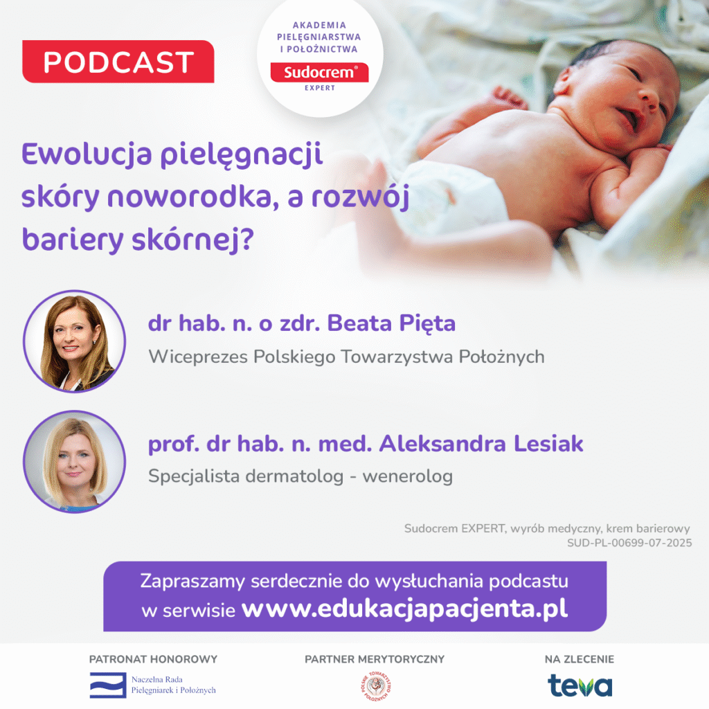 W podcaście udział wzięły dr hab. n. o zdr. Beata Pięta, Wiceprezes Polskiego Towarzystwa Położnych oraz prof. dr hab. n. med. Aleksandra Lesiak, specjalista dermatolog.